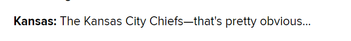 I’m from Kansas, Kansas has a higher percentage of the state that roots for Chiefs vs Missouri since they had the Rams