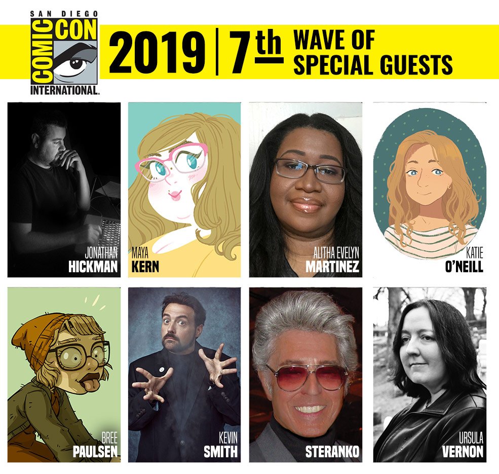 Gooooooood Morning! It's time for the 7th Wave of Comic-Con 2019 Special Guests! Please join us in welcoming, Jonathan Hickman, Maya Kearn, Alitha Evelyn Martinez, Katie O'Neill, Bree Paulsen, Kevin Smith, Steranko, and Ursula Vernon!
