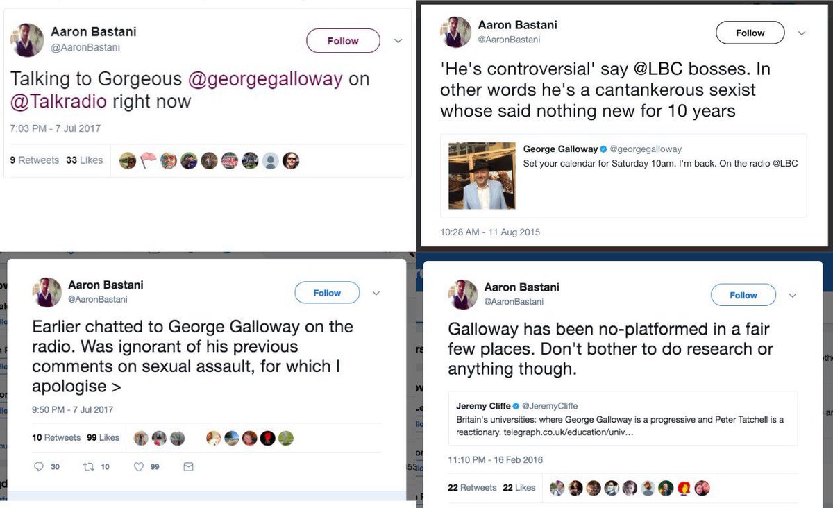 To follow, a quick thread on George Galloway while I walk into work...https://twitter.com/aaronbastani/status/883428067565330436 …