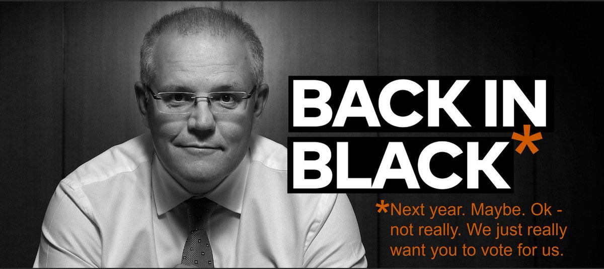 Heh @ScottMorrisonMP - I fixed up your poster by adding the appropriate fine print. No need to thank me. I'm happy to help. #FakeSurplus #Budget19pic.twitter.com/7ek6TTjw9j