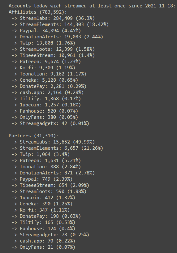 As lots of people have asked about data for active accounts here is the list for the current status on accounts which streamed at least once since 2021-11-18pic.twitter.com/6HYPVRjzNT