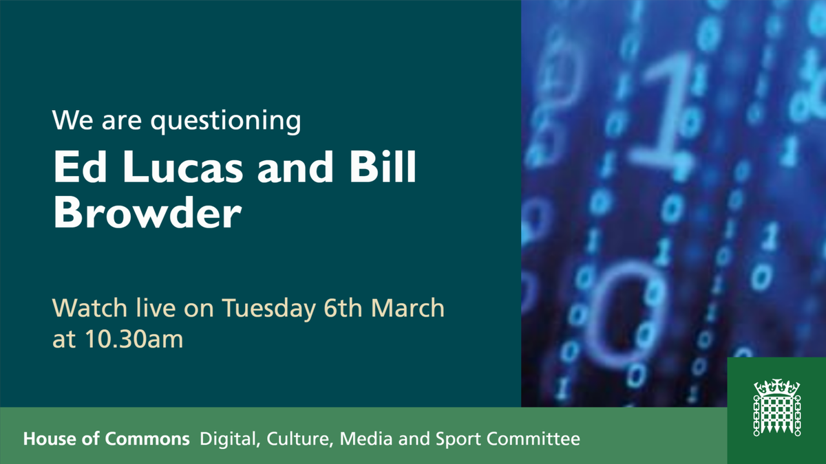 The @CommonsCMS holds its sixth fake news inquiry evidence session this morning. It begins with evidence from Bill Browder & Edward Lucas from 10.30am. For more information: http://bit.ly/2FfQyWL pic.twitter.com/UvgpsA94OU