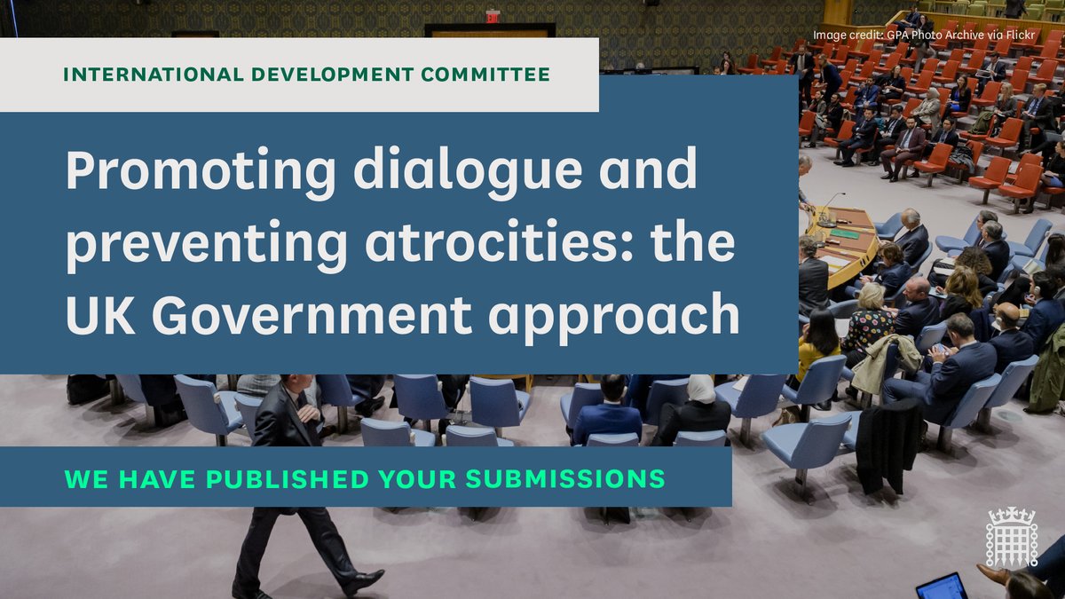 We have now published the first batch of written evidence gratefully received for our new inquiry on how the UK Government works abroad to promote dialogue and prevent atrocities. Read the conclusions of those who submitted here: https://bit.ly/3HuF0v2