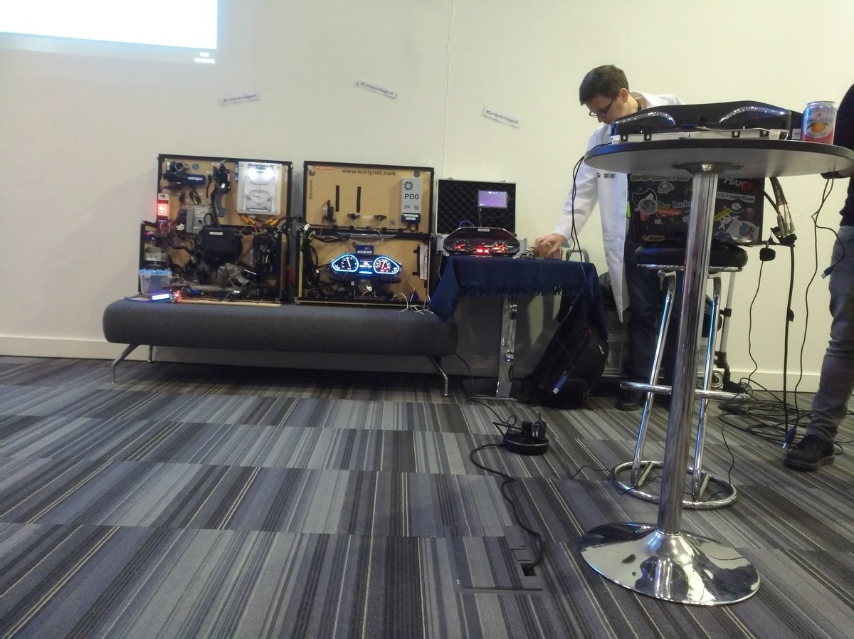 #BlackHat car hacking village was quite entertaining because of the passionate speakers. They also let us play with the car in live session. Credit goes to Daniel Cuthbert and Ian Tabor. #BHEU #BHEU2019pic.twitter.com/BGbuFpsSv1