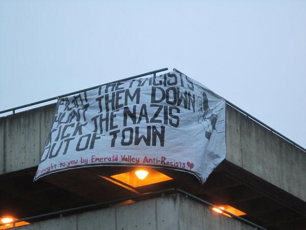 Local banner in reponse to sign some call subtly #racist. #liveonkval #hate speech happens more often than you think.pic.twitter.com/pCTtFzKw5S