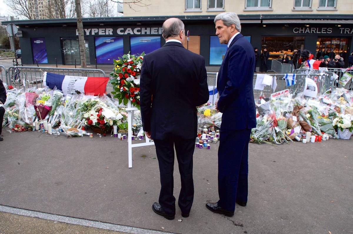 @ConanOBrien CRIMINALS/Secretary Kerry Foreign Minister Fabius after laying a wreath at Cacher Kosher grocery storepic.twitter.com/ZtYCcsRevt