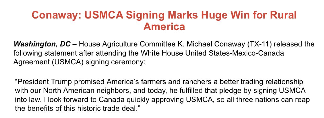 #USMCA with an overwhelming show of bipartisan support. Read more of@ConawayTX11’s statement here