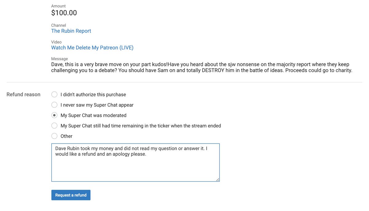 This event was a total disgrace and I hope @TeamYouTube is looking into these criminal business practices. I am irate. Not only did he take my super chat money WITHOUT reading my name or my comment in full. But no one has contacted me about my autographed mug.pic.twitter.com/k0vtCjcEtb