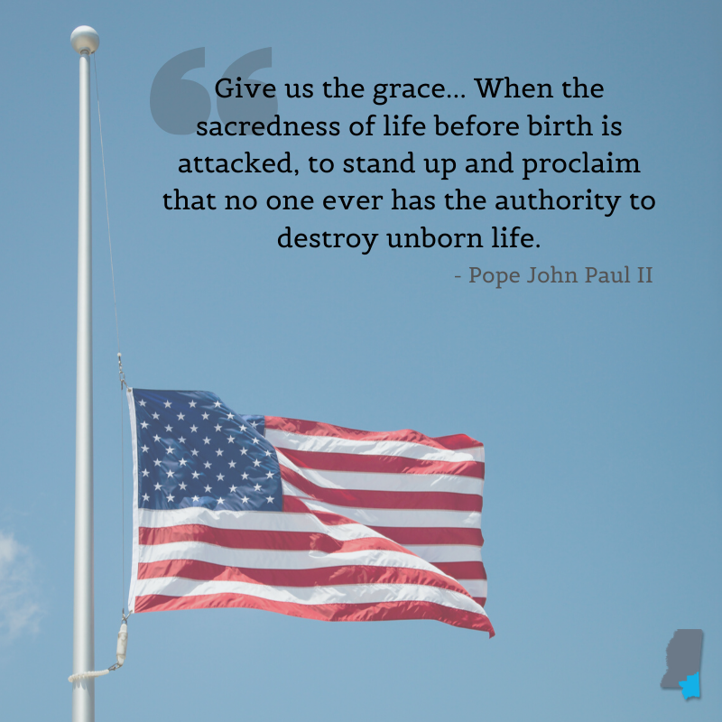 To memorialize the 60 million human lives that have been lost to abortion, I have cosponsored legislation in support of lowering flags across the nation to half staff in recognition of January 22 as the "Day of Tears" in America.
