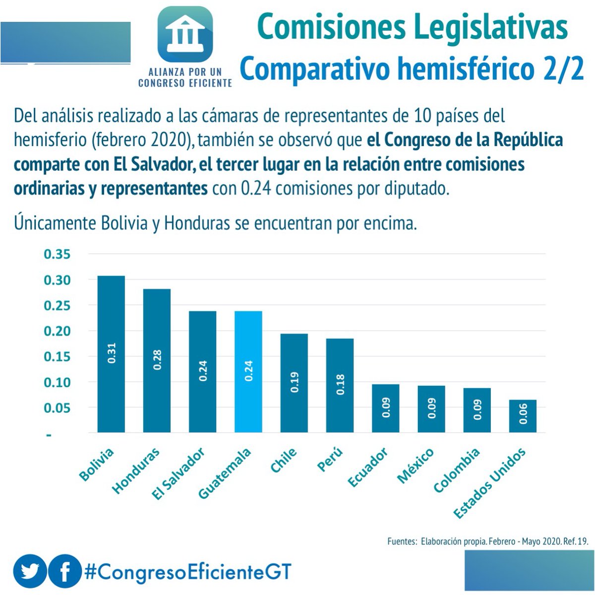 Con relación a otros Congresos del hemisferio occidental, el @CongresoGuate tiene más comisiones ordinarias de trabajo que la mayoría de los analizados, tanto en términos nominales, como comparativos en cuanto a la cantidad de legisladores. pic.twitter.com/C9G9S8cYxK