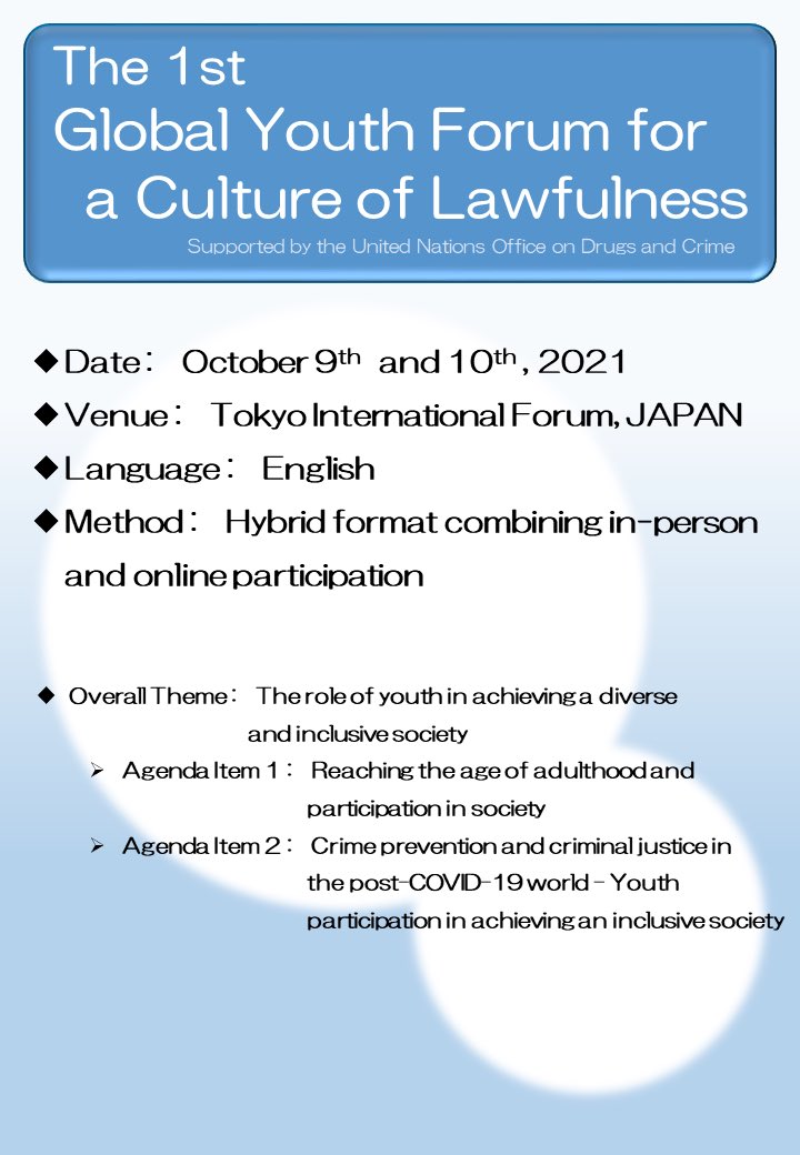 #ColYF] The 1st "Global Youth Forum for a Culture of Lawfulness (Col-YF)" will be held on October 9-10, 2021. Young leaders, gathering from all over the world, both online and offline, will discuss contemporary issues on the rule of law and justice.pic.twitter.com/LuC3rhzjsP