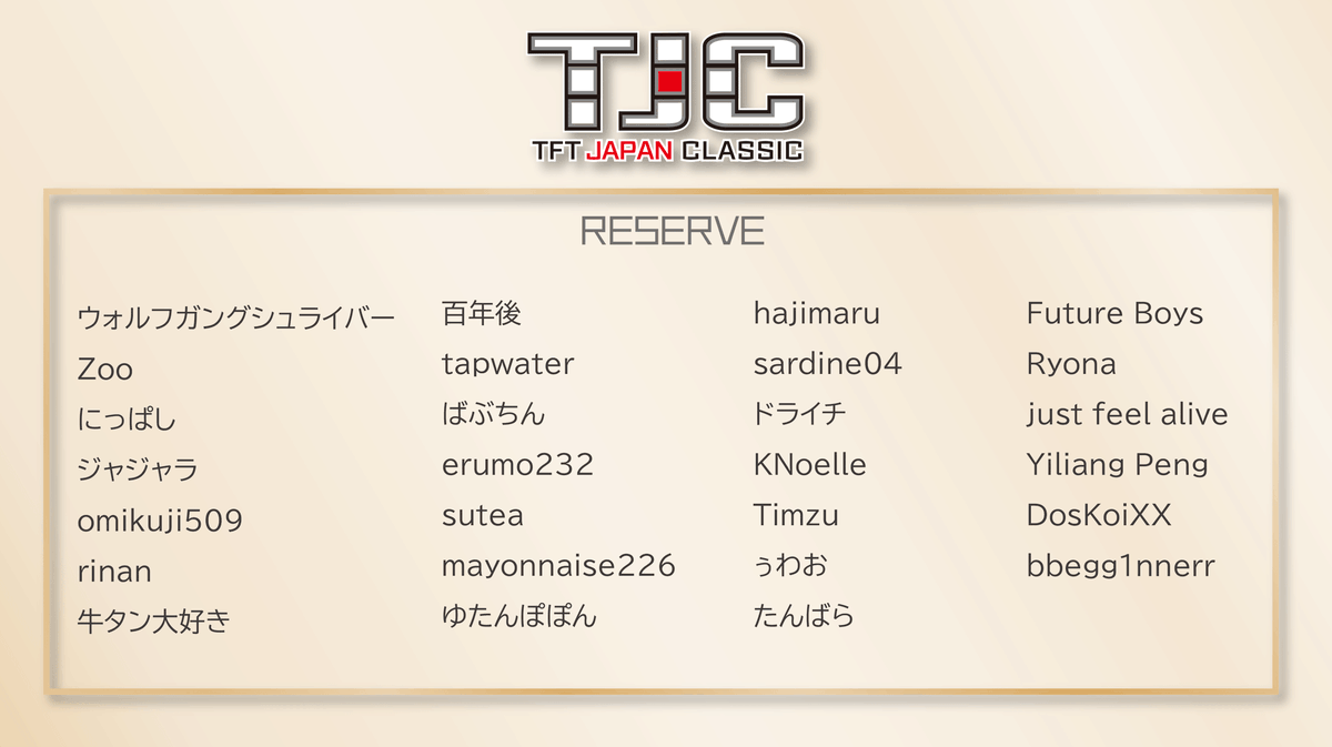 \ \ TFT JAPAN CLASSIC