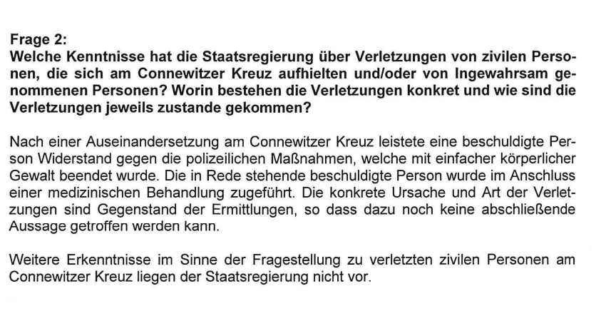 #le3112 sind da. Wenig neues: 250 Polizeibeamt*innen in#Connewitz im Einsatz, davon 19 zivil, 42 Ermittlungs- bzw. Owi-Verfahren, Prüfungen zu Rechtsverstößen durch die Polizei dauern an, 1 ziviler Verletzter muss zugegeben werden, 1/2pic.twitter.com/cWKoiPdJIU
