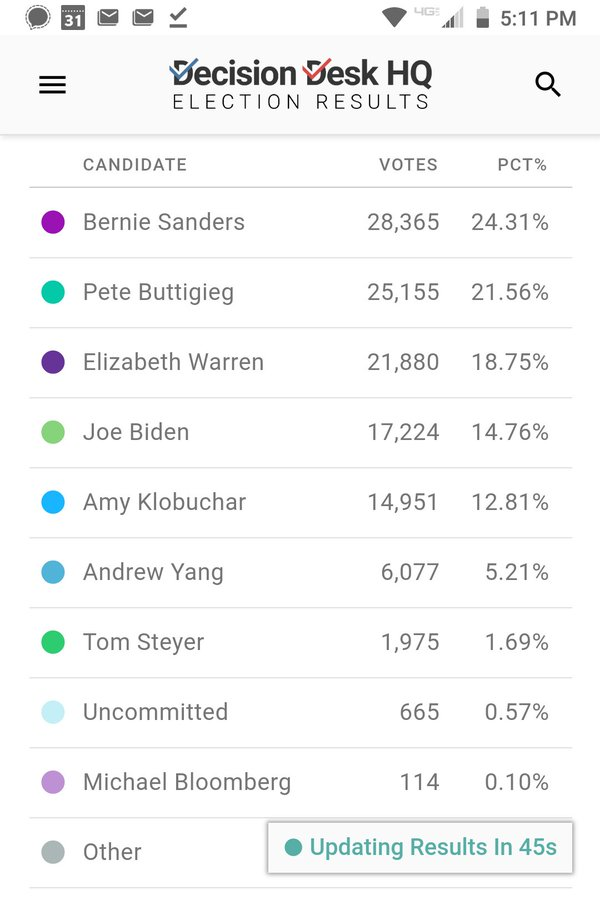 What a coincidence that Mayor cheat was a major backer of the company that was doing the app Now miraculously he's leading in the popular vote Bernie grow some balls