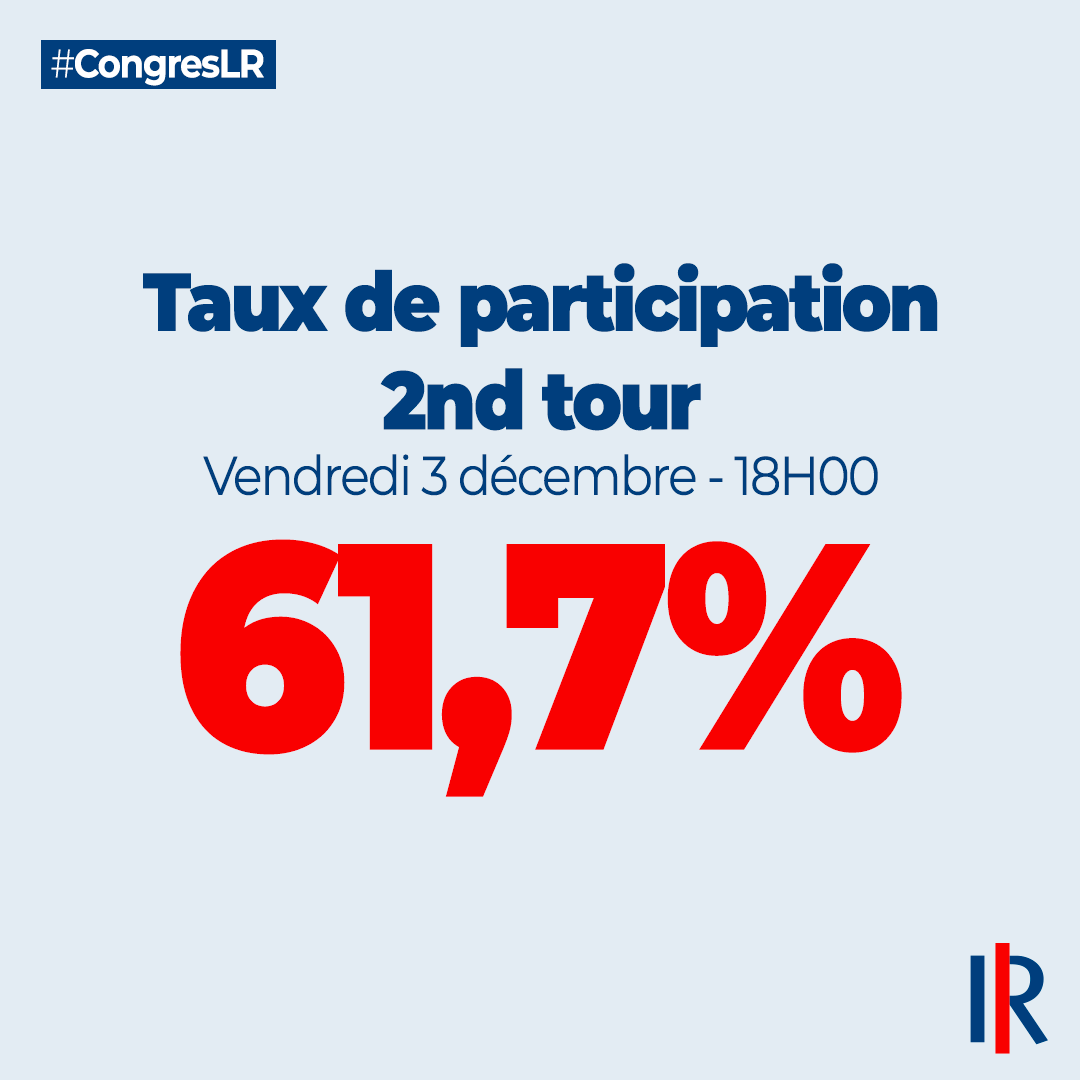 À 18h00, au 2nd tour du #CongresLR, le taux de participation s’élève à