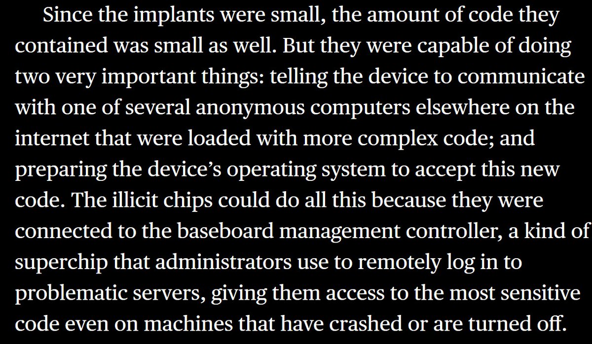 In the wake of the US government banning the use of Chinese drones in its operations, this 2018 Businesswek article on implanting tiny spy chips on motherboards used by 30 US companies makes chilling (and in one instance hilarious) reading.pic.twitter.com/sGYZ8uLFoQ