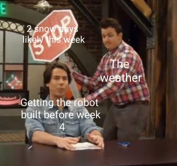 Week 4 has shorted our build time by 3 days because of snow and the cold. Even with this, the programmers still were able to get the drive system running smoother! Electrical has also been productive and finished the CAD system for the electrical board. Design finished the CAD.pic.twitter.com/VaVWyJwukT