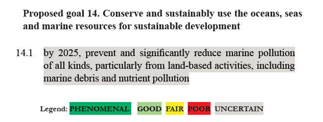 Too vague to judge but reducing #marine #pollution is likely beneficial. #UNcertain #Post2015 http://ow.ly/E7vdF pic.twitter.com/QEWP6LjE9S