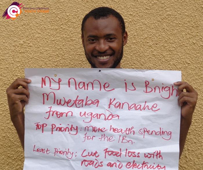 This is Bnigh from Uganda. He chose health spending for the world’s poorest 1 Bn. as his top priority #showyourselfiepic.twitter.com/Q6AyAPOPZf