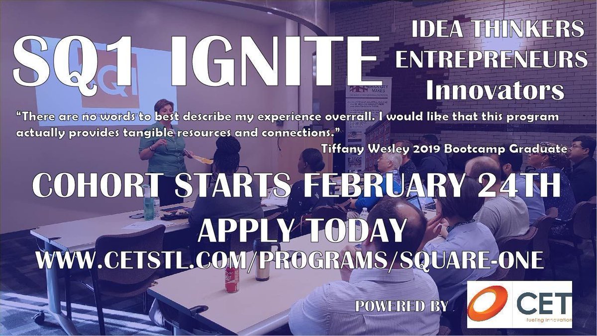 #entrepreneur take advantage of this opportunity! Join the SQ1 Ignite program powered by@CET_STL! Apply today