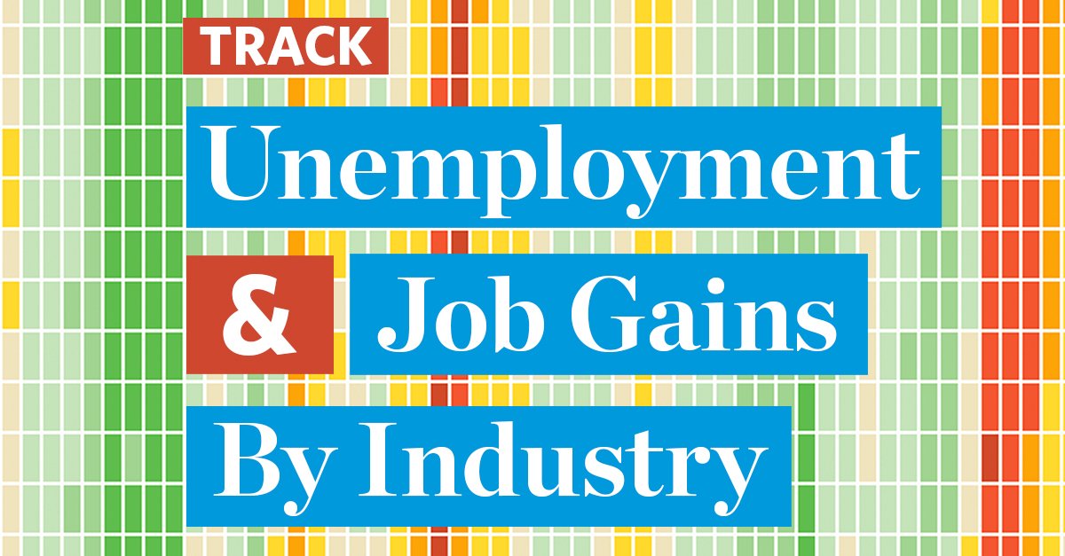 Follow the unemployment rate and job gains in different industries over time. http://cor.bo/1S5WsYK pic.twitter.com/I6QaH0ogzE