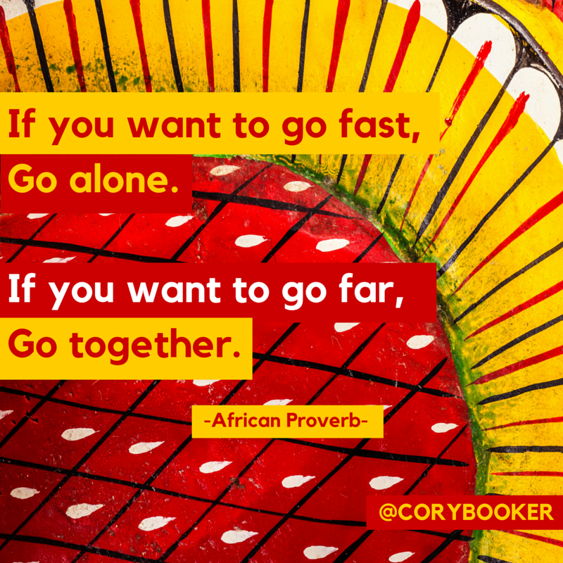 @CoryBooker If you want to go fast, go alone. If you want to go far, take a sweater. Could be chilly.Thanks. Twitter will use this to make your timeline better. UndoUndo