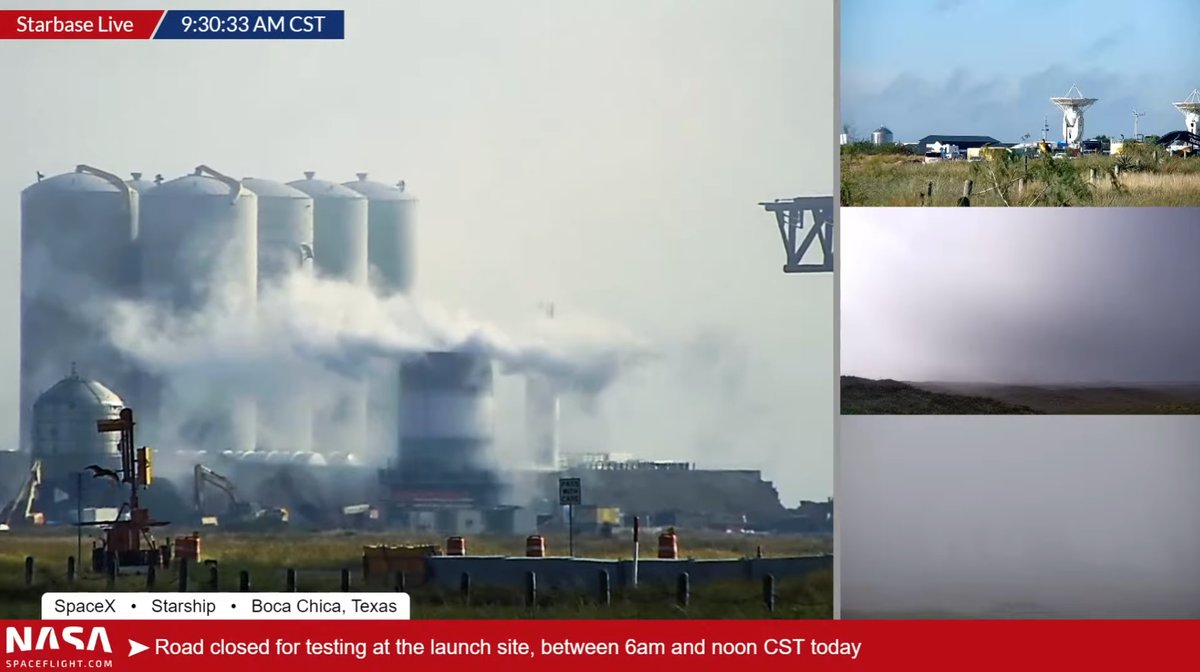 Test Tank B2.1 is undergoing more testing today, supplied by the Orbital Launch Site's Tank Farm on what is a very foggy morning. http://nasaspaceflight.com/starbaselive pic.twitter.com/GdepxByYJJ