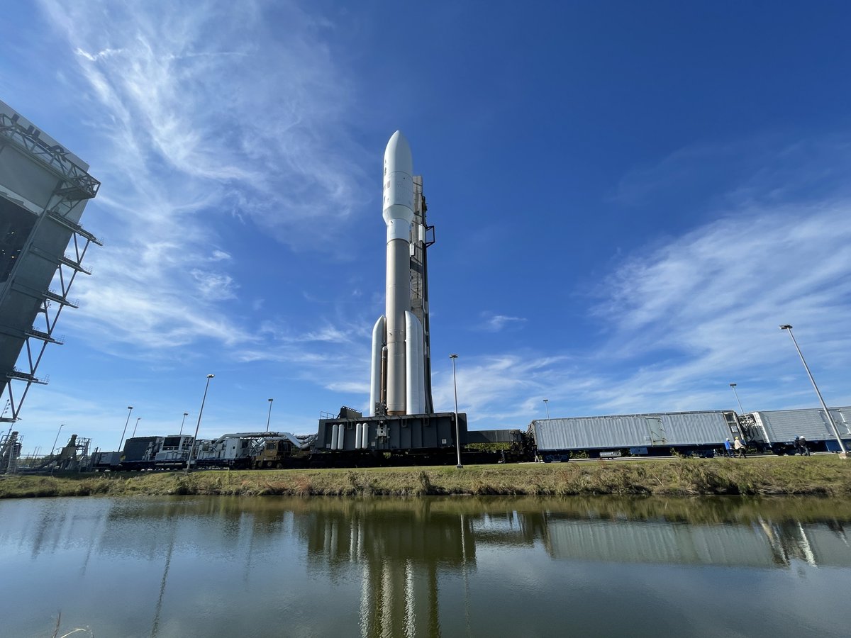 #AtlasV rocket, designated AV-093, stands 196 feet (59.7 meters) tall and will weigh 1,295,695 pounds (587,717 kg) once fully fueled for liftoff. It features five side-mounted solid rocket boosters for max liftoff thrust.pic.twitter.com/muiZJSEEem