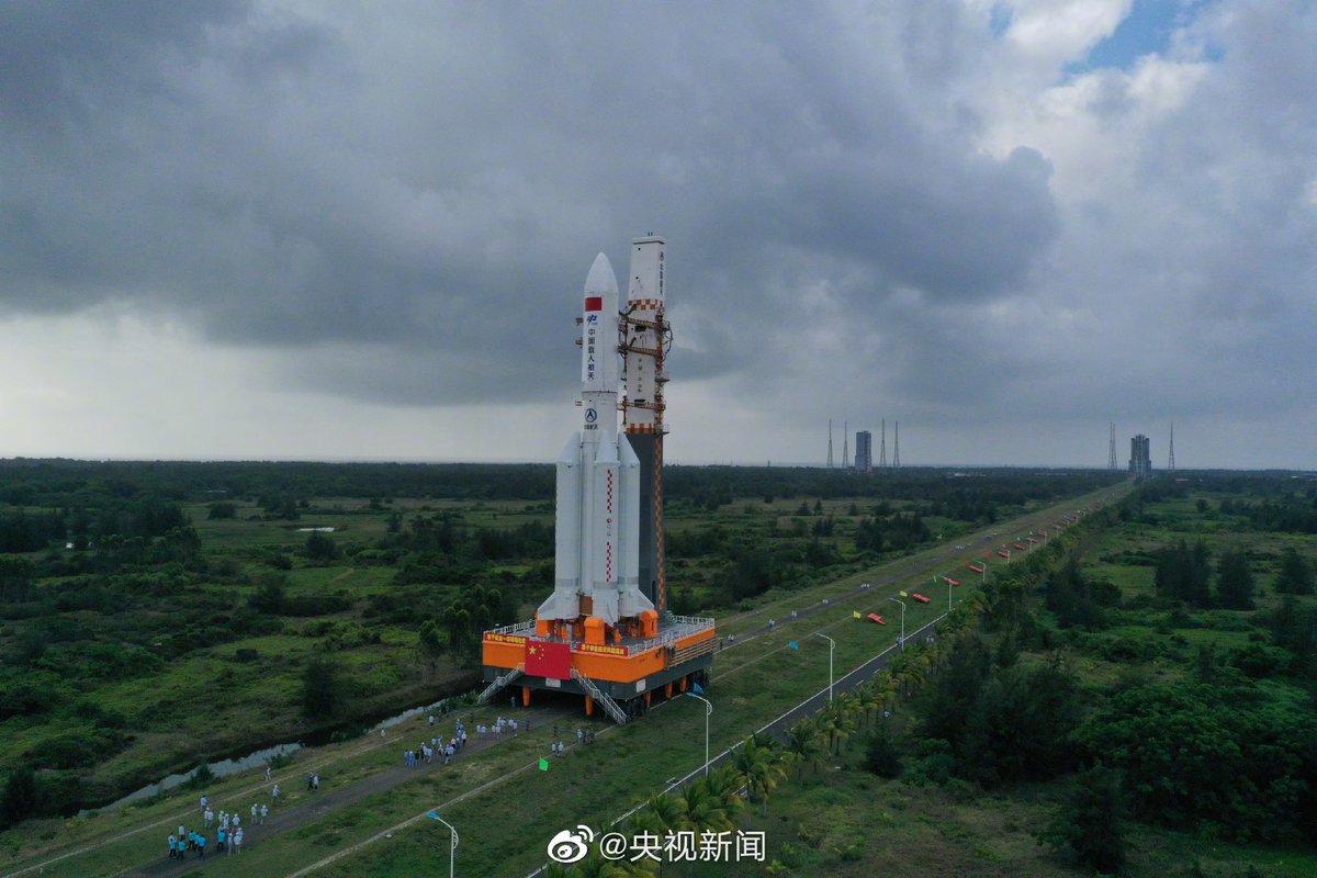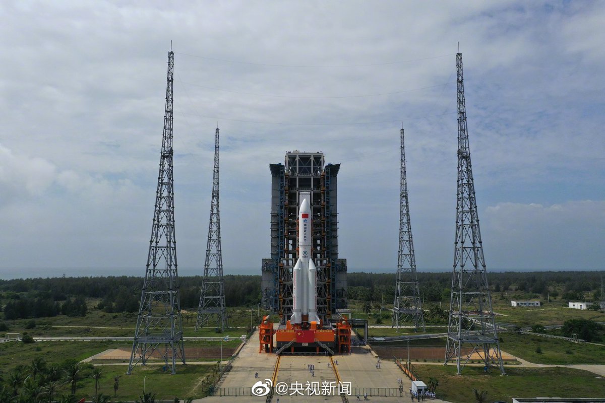 Long March 5B test flight update: fueling in progress and launch pad service platforms are starting to swing back. According to reports the new crew S/C will be deployed to LEO, perform tests over several+ orbits, fire its engines to elliptical orbit & test re-entry at 9 km/s.pic.twitter.com/BEtyTReaAo