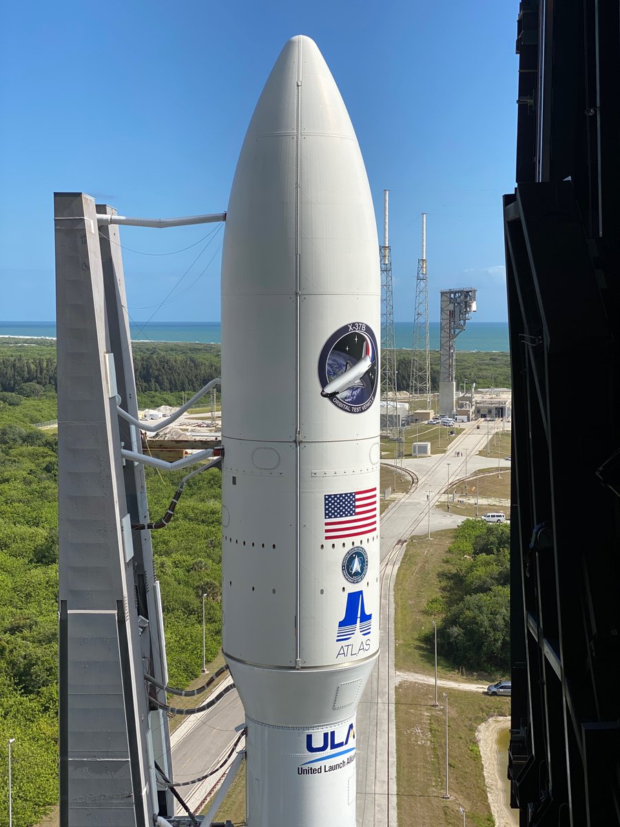The #AtlasV rocket and #USSF7 emerge from the assembly building as they make their way to the pad for Saturday's launch: http://bit.ly/av_ussf7