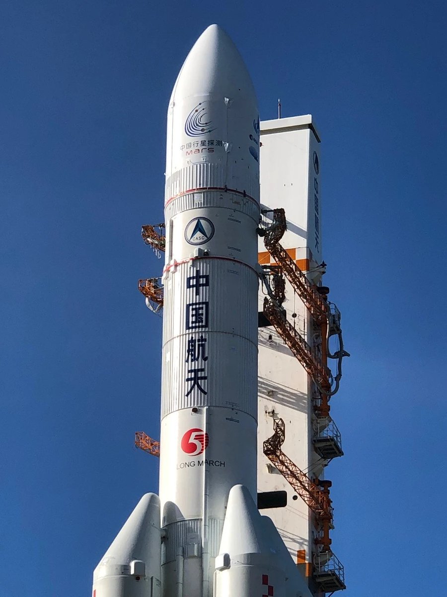 Just right now the Long March 5 rocket carrying the Chinese TW-1 Mars orbiter & @PRCMarsRover rolls out to the launch pad at Wenchang for launch on July 23 early morning UTC.pic.twitter.com/AqF4eIHGgW