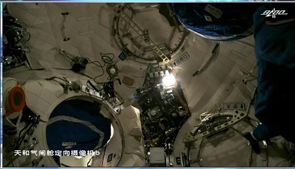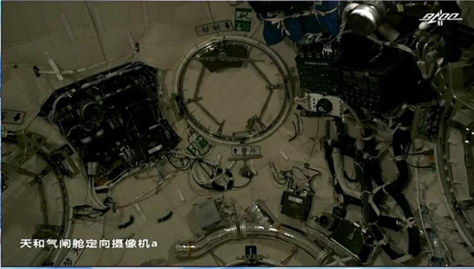 Trivia shown during hatch opening on the CSS: there are direction signs all over the node at the front of the Tianhe Core Module: - Shenzhou towards front w/ 2 signs & 2 Exit signs - Tianhe*-1* (yes) & Tianzhou towards rear - Mengtian towards starboard - EVA hatch towards nadirpic.twitter.com/5arI1qFXCu