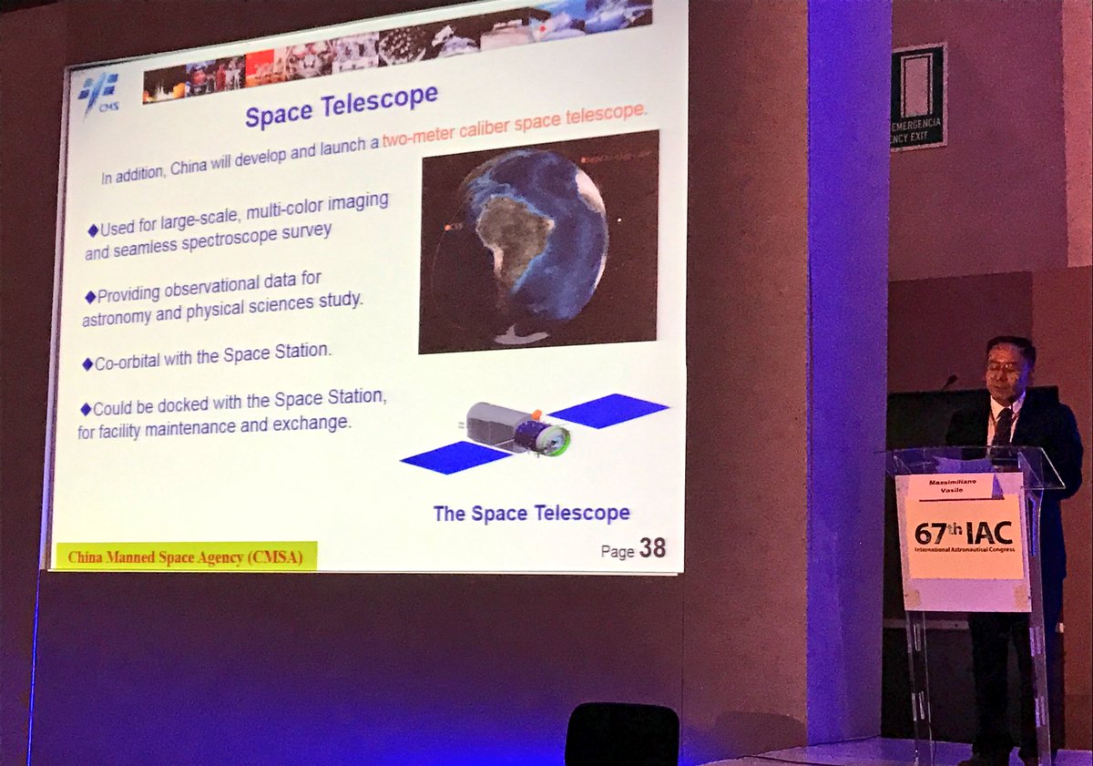 The Chinese space telescope will be co-orbital with the Chinese space station, so it can dock for maintenance! #IAC2016pic.twitter.com/NT5wQjdY8N