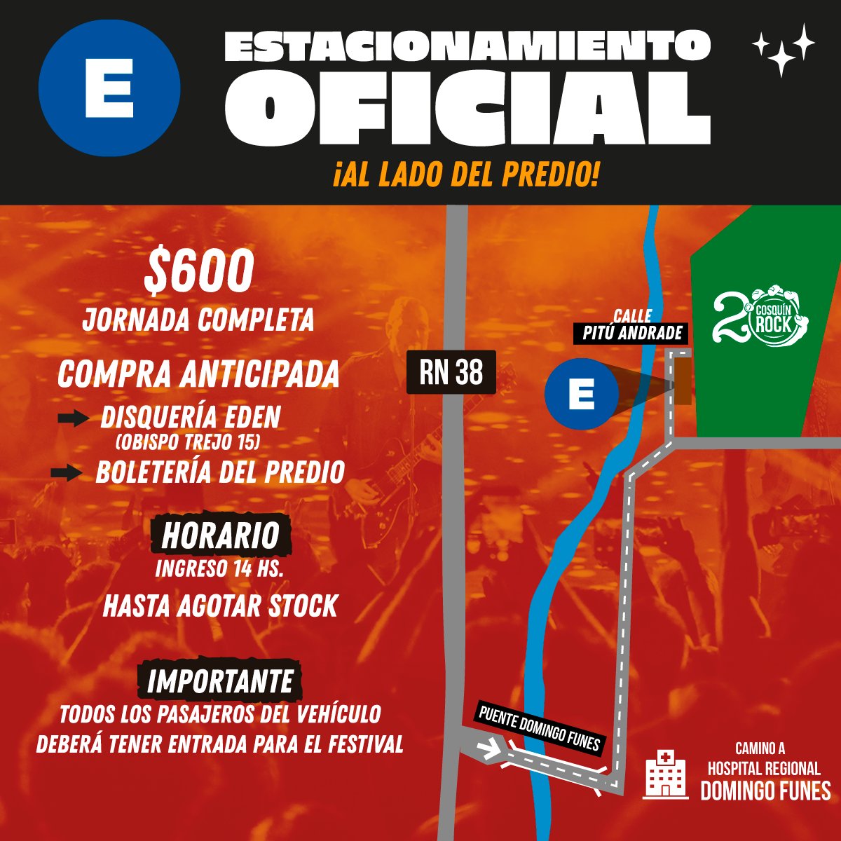 El valor del estacionamiento será de $600 - pago en efectivo - por auto por la jornada completa, hasta agotar stock.