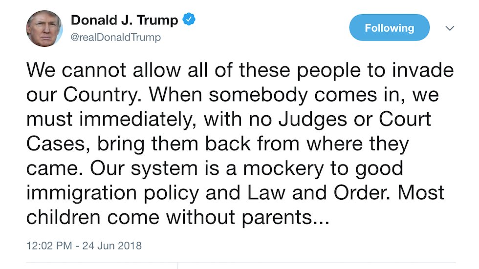 This reveals what Trump has always wanted: no Constitutional rights, no due process for a whole class of people. America, our democracy is under serious attack. Who will be next for elimination of due process protections? Perhaps you?https://twitter.com/thehill/status/1011028464277827585 …