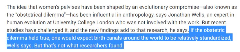 The reasoning there is pure assume the conclusion You'd expect standardized birth canals *if there are no evolutionary pressures for different skull sizes / shapes* (there are because brains are under evolutionary pressure too)pic.twitter.com/6EQ8uxsW75
