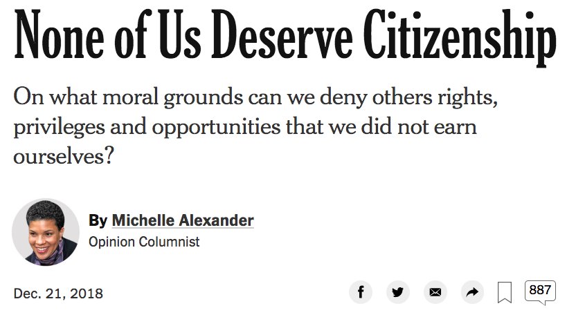 "Rather than viewing immigrants as seeking something that we, Americans, have a moral right to withhold from them, we ought to begin by acknowledging that none of us who were born here did anything to deserve our citizenship..." -- NYT http://www.unz.com/isteve/nyt-none-of-us-deserve-citizenship/ …pic.twitter.com/wd8XCNlPYW