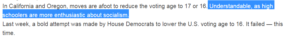 He's still far too optimistic in that piece It's not that 16 year olds are gung-ho about socialism - it's that they're the leading edge of the non-white future and why even bother busing voters to the polls - who'll even check that actual voting happens in CA?pic.twitter.com/ZBPPZzfRBe