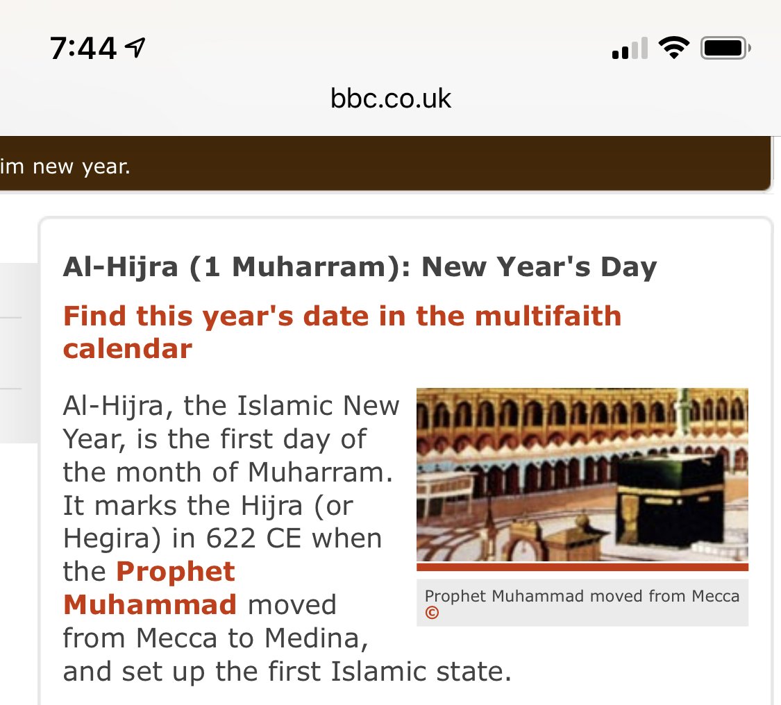 Al Hijra in Arabic. Means immigration to found an Islamic state. Abbreviated to AH when used n the Islamic calendar and 0 marks the year of Mohammed’s move from Mecca to Medina.pic.twitter.com/vDsAlyCR22