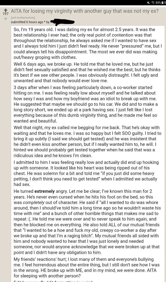 WTF? Boy, one thing I really want in a woman is that she'll fuck *someone* - doesn't really matter who, just has to be someone