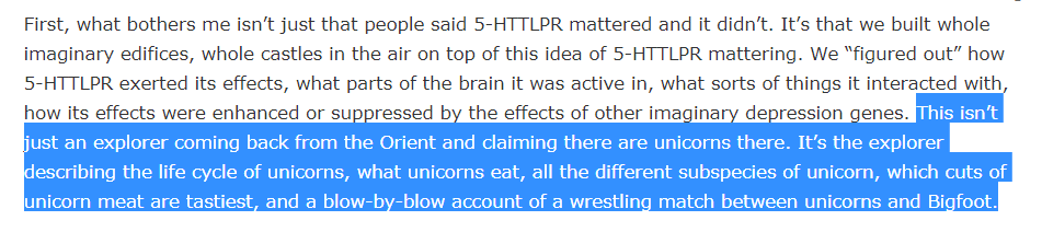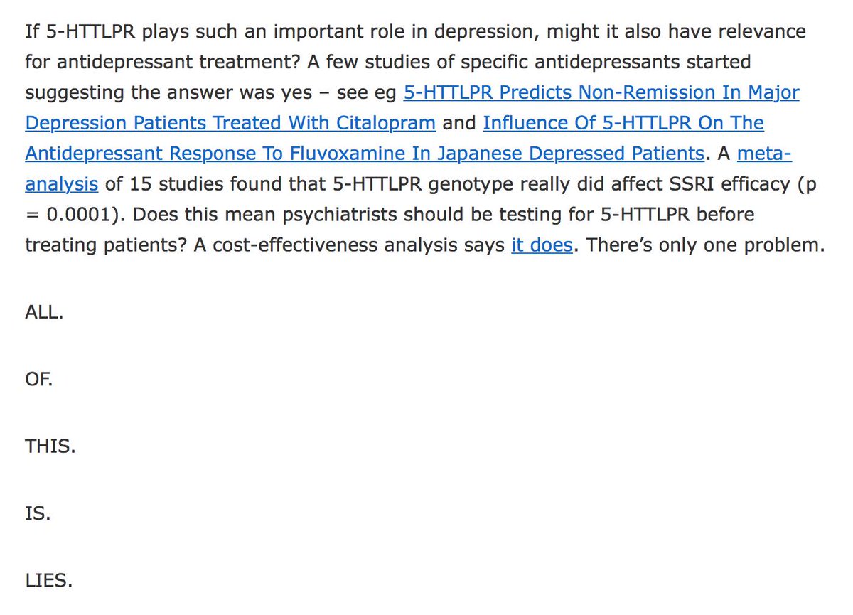 TL;DR: Researchers find a gene linked to depression. The more they study it, the more connections they find. Over the years, hundreds of scientific studies back this gene's importance to understanding depression + mental health As Scott says, the only problem? It was all lies.pic.twitter.com/9hbQc8aRhi