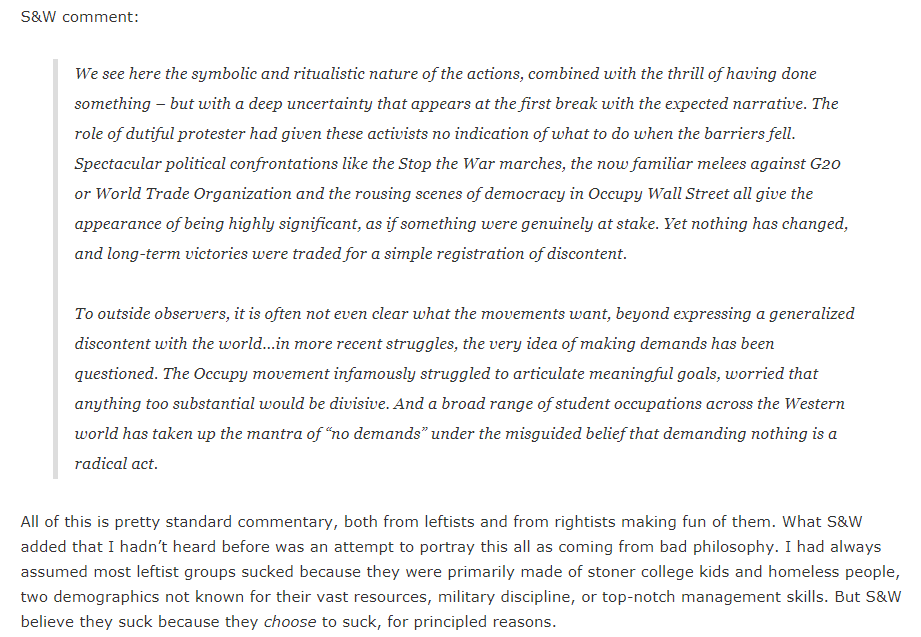 So you attack the problem ideologically - make sure the protesters make committees and sign off unanamiously on everything - live up to the ridiculous ideology. From Scott Alexander's review of some communist manifesto: 4/pic.twitter.com/b81NodoZyF