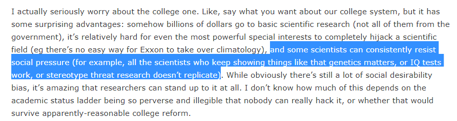 This apparently sincere argument is that academia does such a great job because some small part of it noticed that an entire field was fraudulent. If this is proof that academia works well what would proof of it being massively dysfunctional look like?pic.twitter.com/N0pEiWWzxh