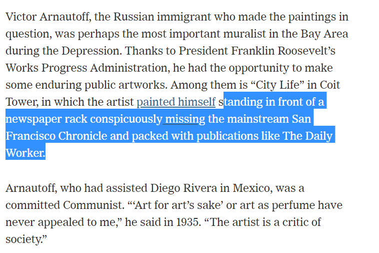 This is hilarious - Bari Weiss opposes destroying this guy's art because he's a good progressive (communist) and *the very first thing* she describes in her elegy for the commie's artwork is how he re-wrote history to praise communism https://twitter.com/KathaPollitt/status/1145319534385082369 …