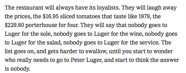 This is accurate. It's one of those things you can't say or people yell at you. If I want a bad, overpriced steak, I'll just go to Striphouse instead of going all the way to Williamsburg.https://twitter.com/jbarro/status/1189210255525404672 …