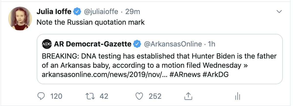 Julia thought the newspaper of record in Arkansas, published since 1819, was a Russian bot?https://twitter.com/juliaioffe/status/1197283607305433095 …