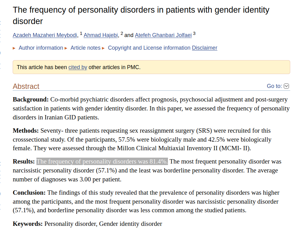 Do transgender people seem insane to you? Well. https://www.ncbi.nlm.nih.gov/pmc/articles/PMC4301205/ …pic.twitter.com/pxeEcQ4LfN