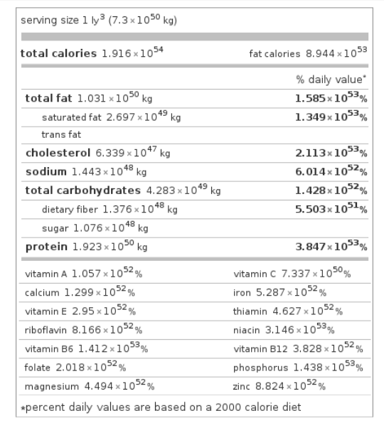 Ever since I first saw someone query WolframAlpha for the amount of calories in one cubic light year of fried chicken I've been fascinated by units