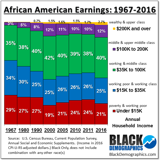 #last - you're also assuming most Black people are poor, and the suburbs aren't 25%+ integrated with POC. Here's an actual breakdown of Black incomes. Again: ghetto or trailer park - maybe dangerous. Integrated prom - you can stop running and screaming.pic.twitter.com/RXT8HmqbmH