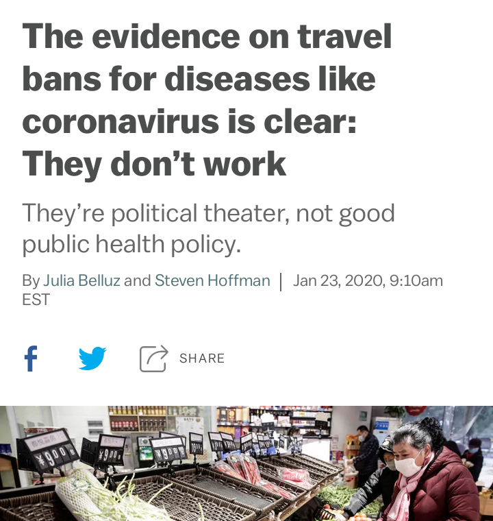 The "problem" as far as Vox / Guardian / NY Times is concerned with this line of reasoning is that it's not confined to fighting pandemics They're committed to removing borders on nations and then fail to notice the reaction which is to recreate those borders around *everything*